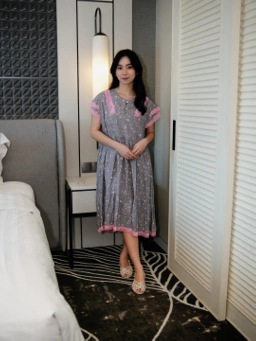RUBY Homewear Pendek Kombinasi Renda Bahan Rayon Premium Kancing Busui Friendly